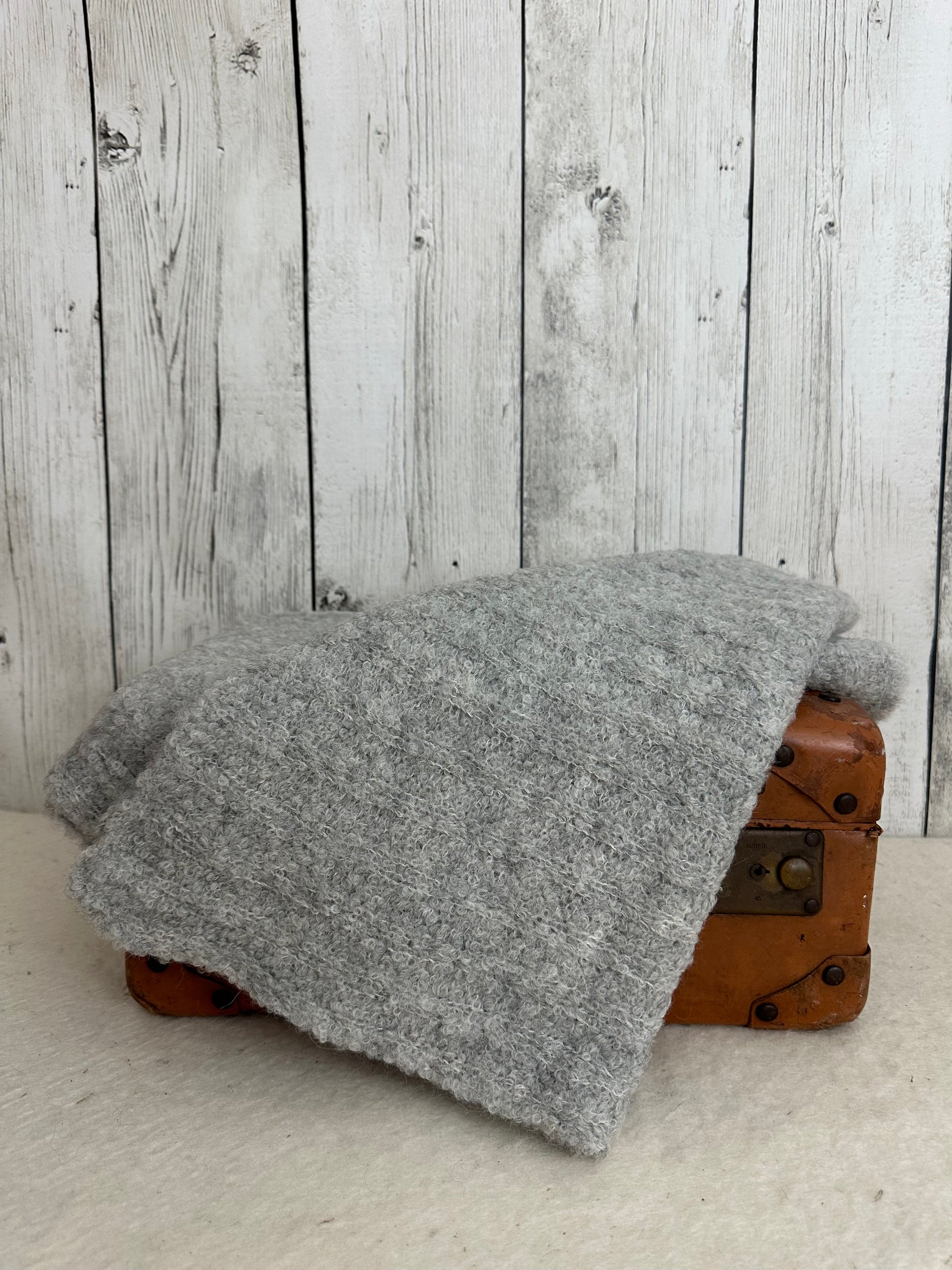 Alpaca bouclé scarf with a classic ribbed knit—light, warm, and versatile.”